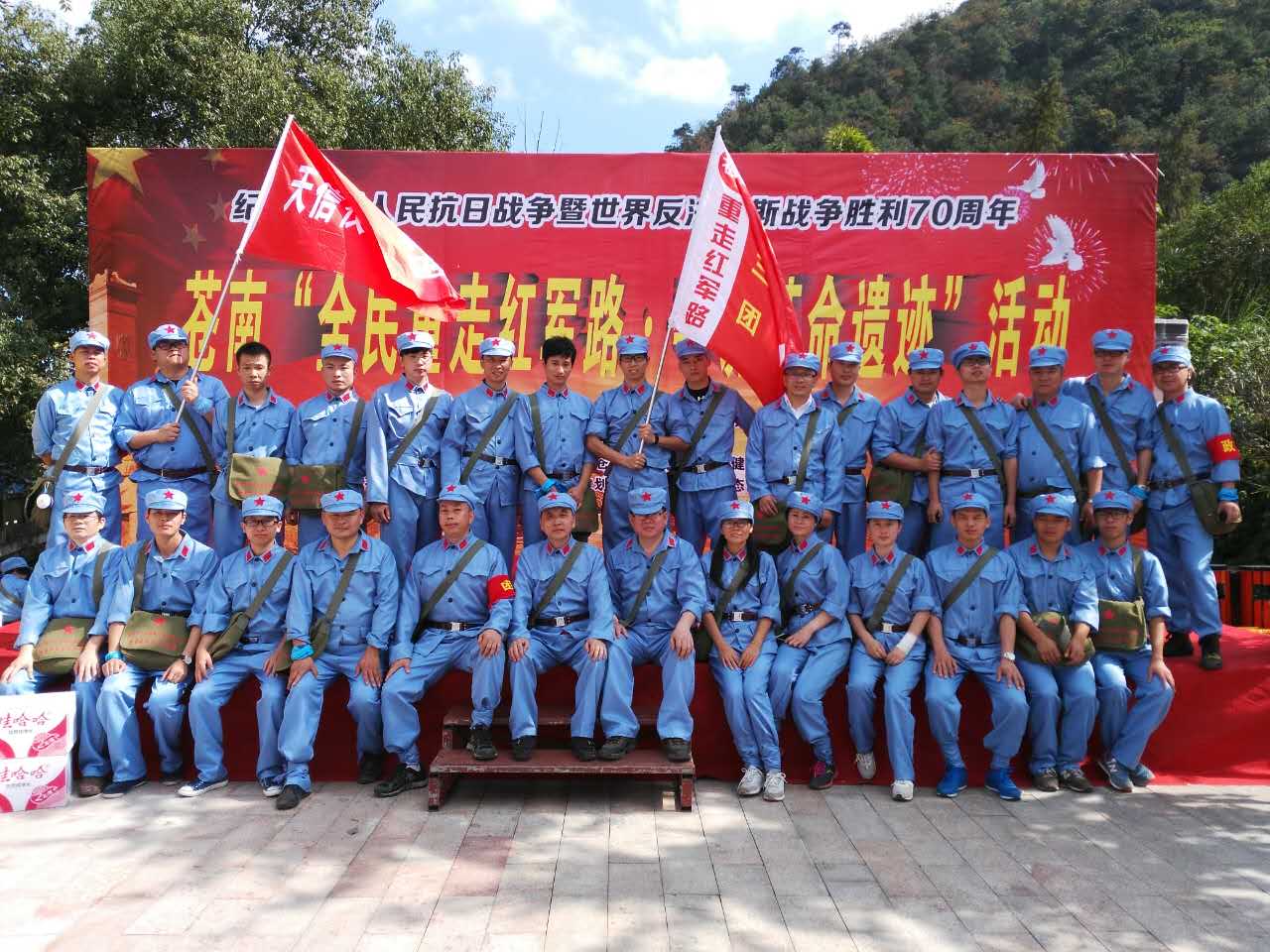 身著紅軍服,頭戴紅軍帽,重走紅軍路。10月18日,天信儀表集團(tuán)30余名員工作為第3紅軍方隊(duì),在團(tuán)長(zhǎng)鄭成平、政委范叔曙的帶領(lǐng)下,參加了溫州市戶外運(yùn)動(dòng)協(xié)會(huì)蒼南分會(huì)組織的全民重走紅軍路尋找紅軍遺跡活動(dòng)。本次活動(dòng),從蒼南烈士陵園集合出發(fā),最后到達(dá)云巖鄉(xiāng)革命老根據(jù)地紀(jì)念亭,全程共18公里。