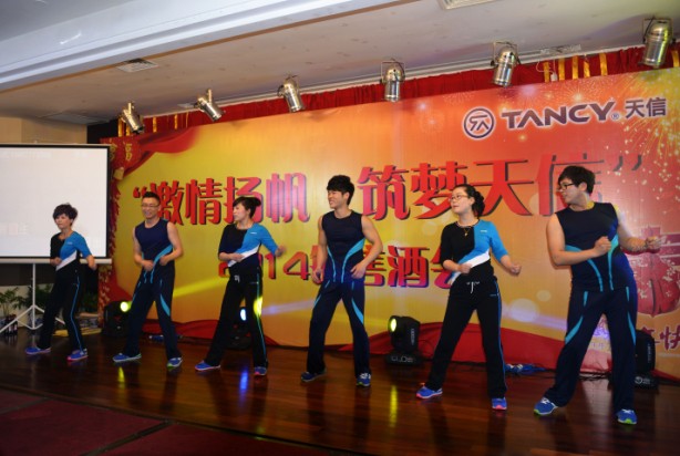 到了晚上,嚴肅莊重的會議變?yōu)闊艄廨x煌、激情四溢的熱鬧場景。公司領(lǐng)導(dǎo)和嘉賓、還有200多名營銷、后勤服務(wù)人員歡聚一堂,共享豐收的喜悅。陳董和范總先后上臺致辭,在他們的字里行間,無不流露出對大家的感恩之心,他們還表示公司將在新的一年里一如既往的關(guān)心和支持銷售工作,這讓大家為之榮耀,為之振奮!