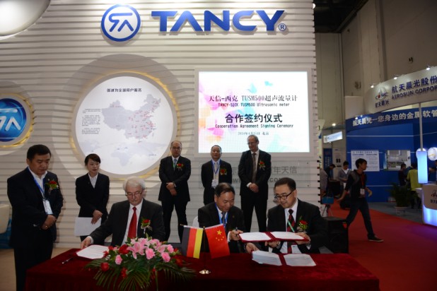 本次北京參展還有一項(xiàng)重要議程,西克天信USM500超聲波流量計(jì)合作協(xié)議簽約儀式于10:00正式開始,參加簽約儀式的有來自北京西克麥哈克公司和德國西克的領(lǐng)導(dǎo)以及天信公司董事長,總裁,技術(shù)總監(jiān),參展商代表等。營銷中心總監(jiān)范曄主持簽約儀式,陳開云董事長致歡迎辭,西克銷售經(jīng)理班吉爾先生代表西克公司發(fā)表致辭。本儀式簡約而隆重,許多載入天信展會(huì)上的許多參展商也應(yīng)聲來到天信展臺(tái),為之喝彩。本次合作,有利于發(fā)揮各自優(yōu)勢,深化互利合作,共同推進(jìn)超聲波流量計(jì)產(chǎn)品及技術(shù)領(lǐng)域的長足發(fā)展。